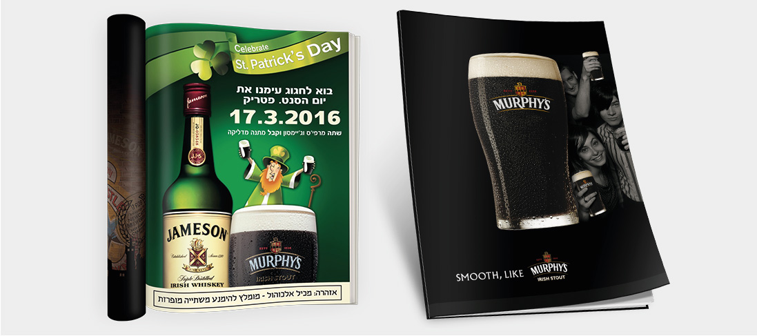 בירה Murphy’s - עיצוב מודעת פרסום תדמיתית ומודעת פרסום לציון יום פטריק הקדוש | פרסום